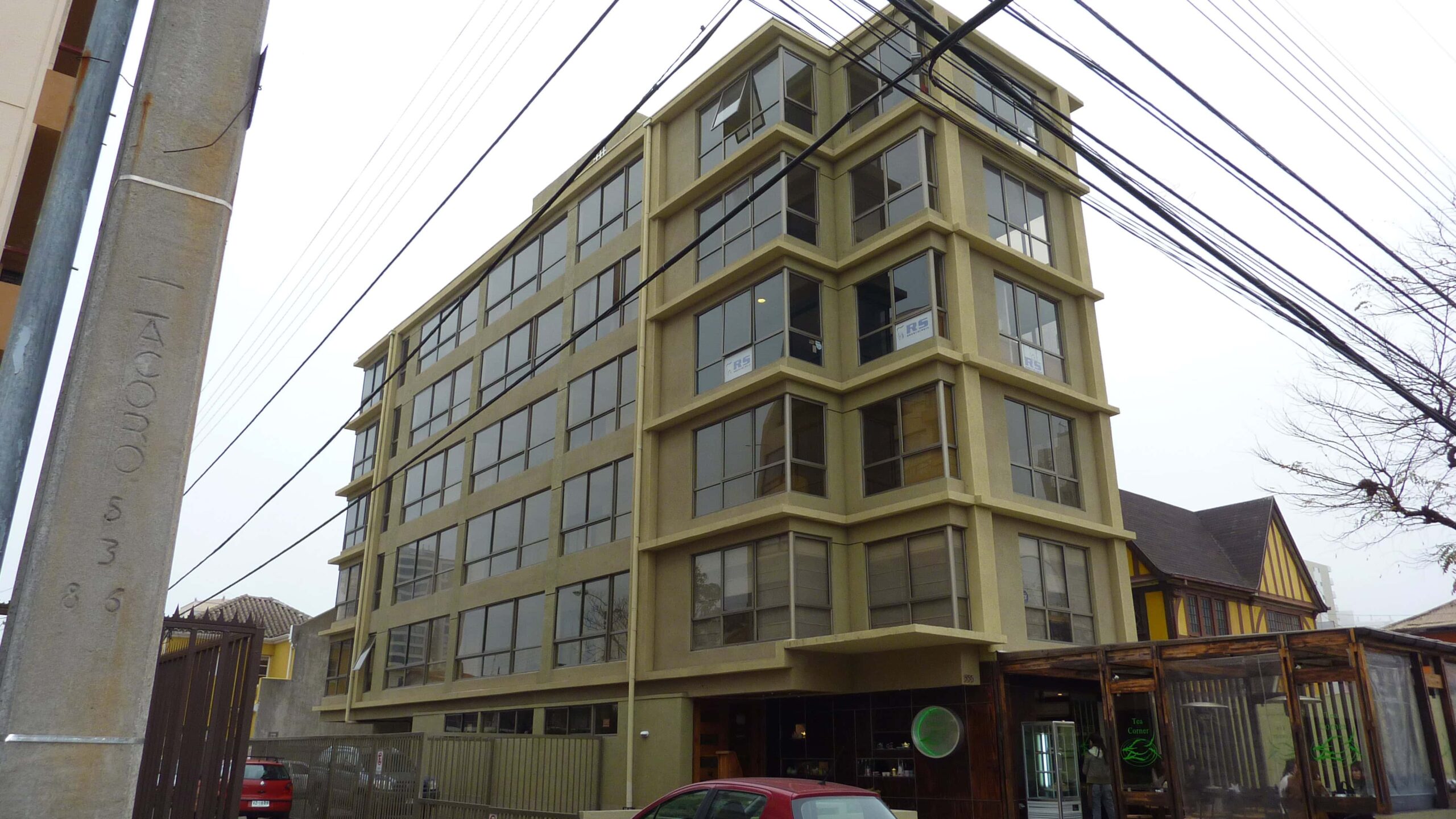 Estructuración: Edificio de oficinas de 6 pisos más un subterráneo, estructurado con marcos de hormigón armado y un núcleo central de muros de la misma materialidad. Plantas libres. Cálculo realizado para Heriberto Araos.